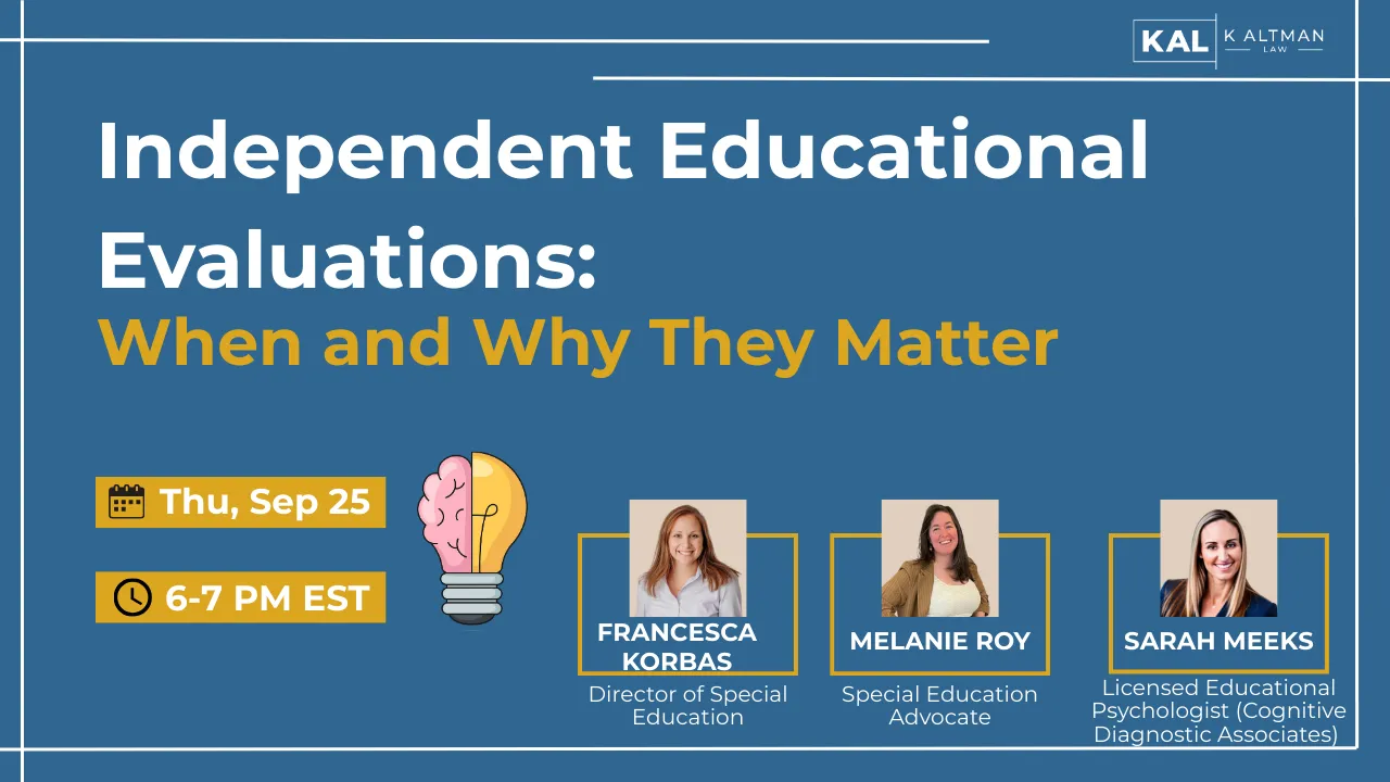 Our team recently joined Sarah Meeks of Cognitive Diagnostic Associates for an important discussion on independent educational evaluations. Together, we explored what these evaluations are, when they should be conducted, and how they can support—or, in some cases, hinder—a student’s success in K–12 education. The conversation offered clear, practical guidance to help families and educators better understand the purpose, timing, and impact of educational evaluations.